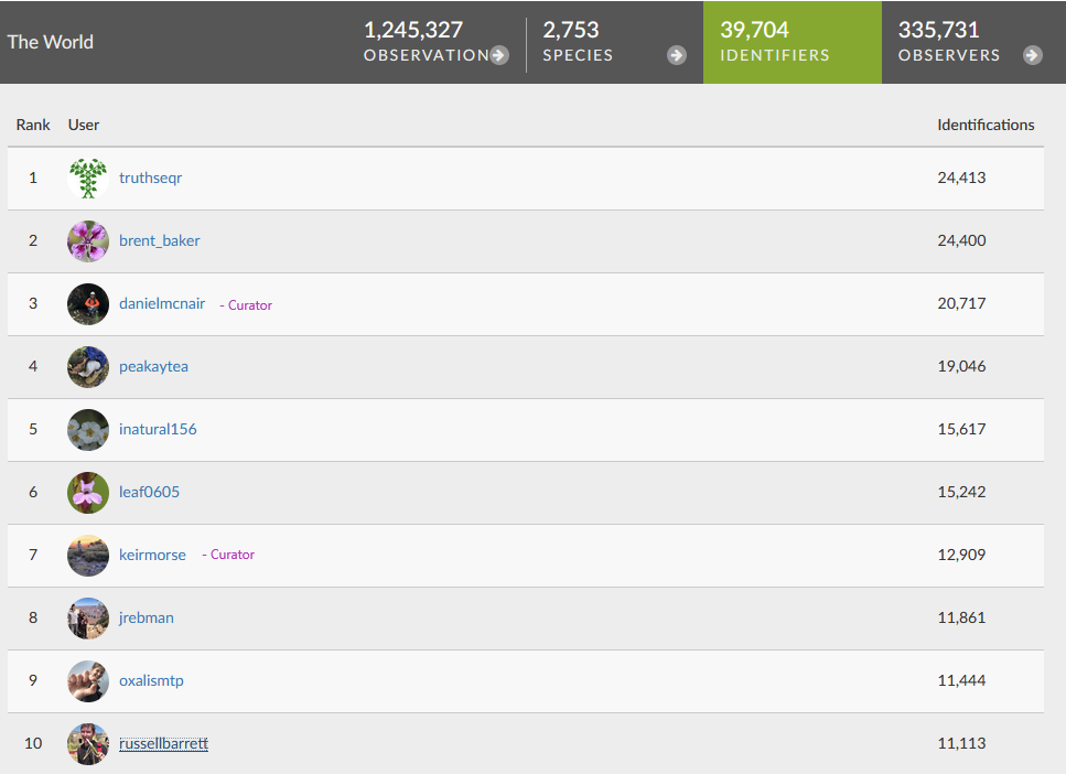 I like the way in which staff, curators, and everyone else are portrayed the same way in leaderboards and elsewhere; it’s consistent with the implicit philosophy across the platform that all of our observations and identifications can theoretically be of equal value.
