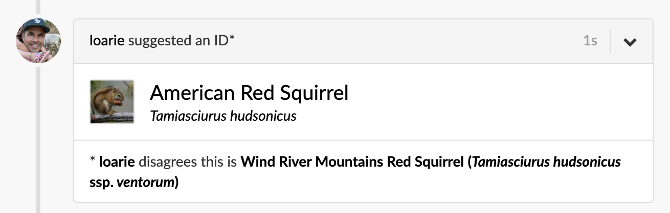 Progress, iNat is now ‘working as intended’ and ALSO as I expect it to - can be Needs ID at ssp. Instead of leaping from RG at sp … then jumping straight to RG at ssp. (I waited 4 years)