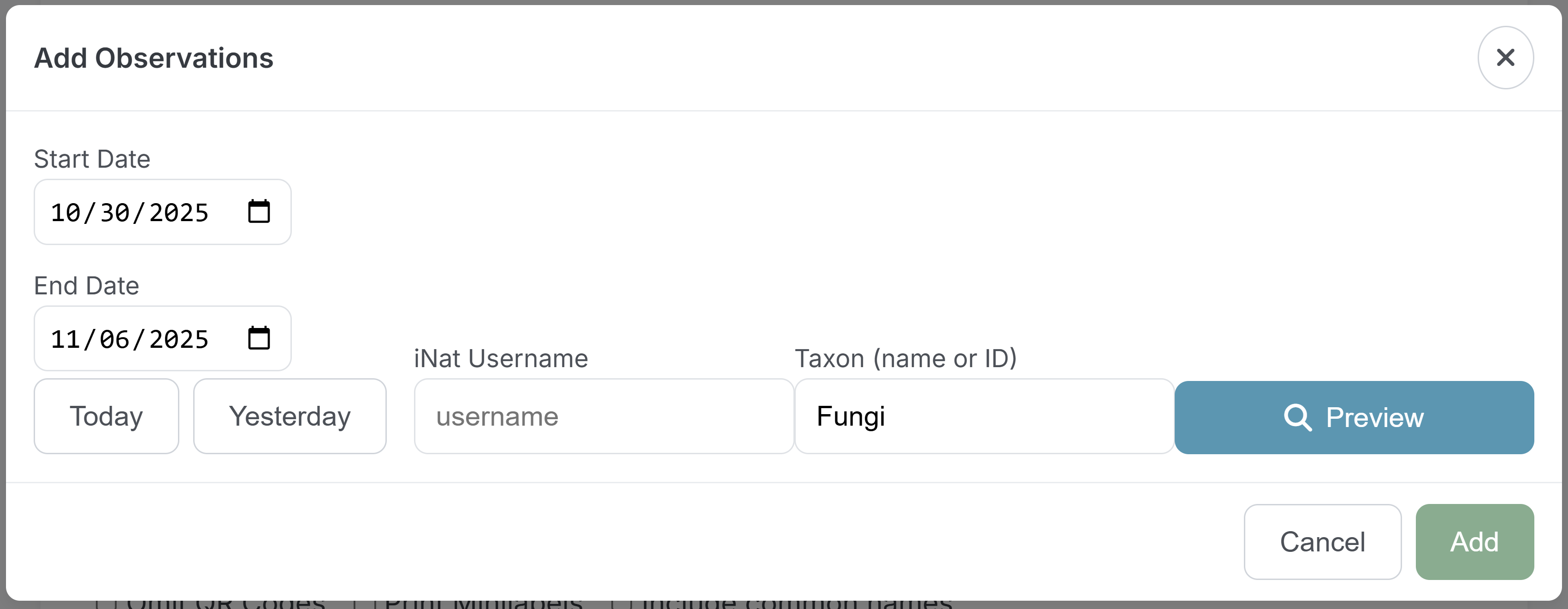 This is amazing. I add iNat QR codes on my labels that have matching iNat observations, but this tool could really streamline my process. I have a few questions/requests: