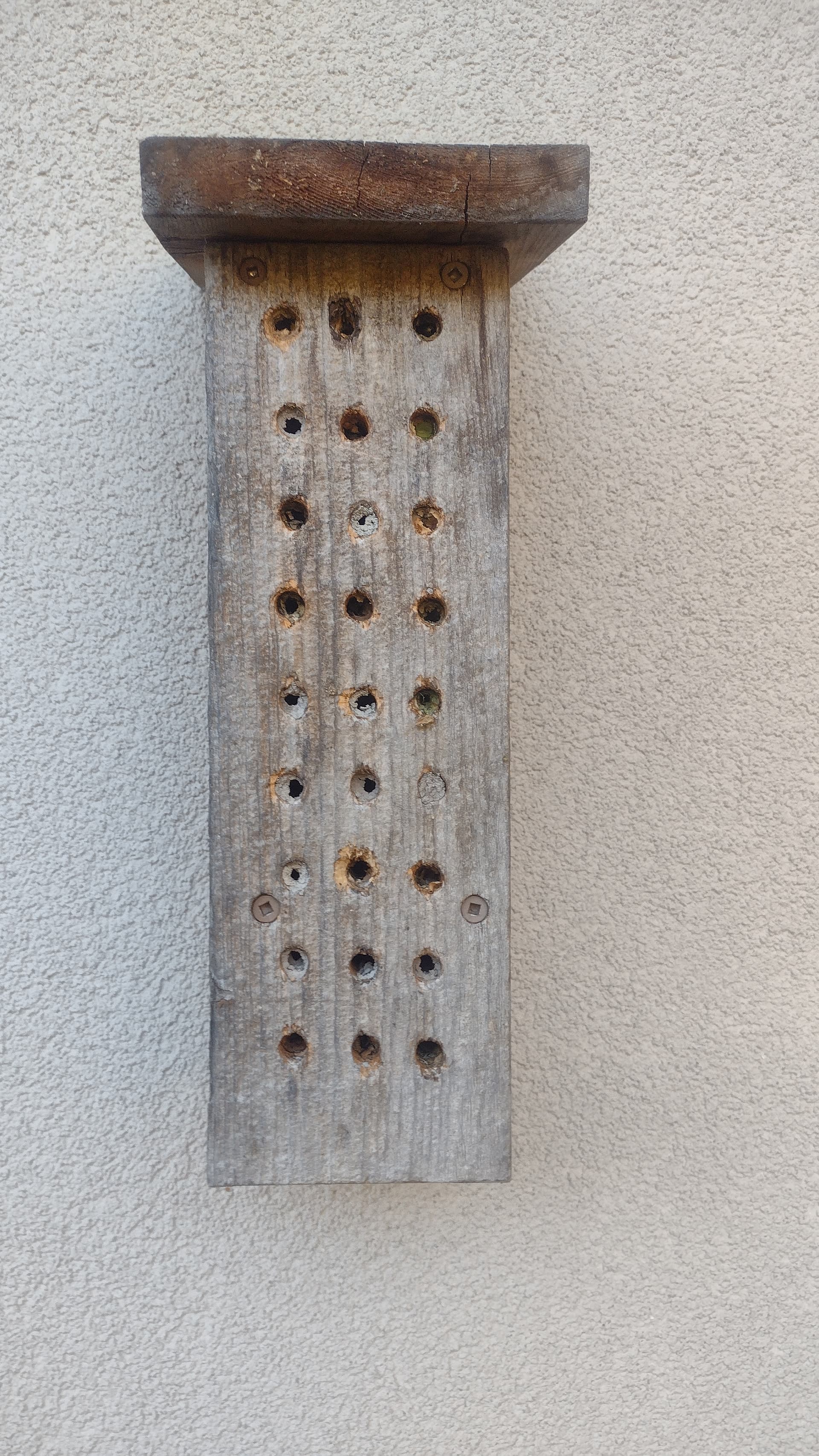 Hi. I have been using the solitary bee hotel for about 4 years now at my home near Ottawa. It has been fully occupied by about mid August for the last two years, as evidenced by every hole being plugged with mud - with some showing a small amount of green leaf left as food. The holes are about 3.25” deep in old cedar and the hotel is mounted about 4’ off the ground. What has then happened (both years) is that many of the holes appear to have been broken out as if the bees decided to leave now rather than winter over. Our summer this year was very hot and dry, but last year was cool and rainy. When I cleaned out the holes this spring I did not find any dead bees or evidence of fungus etc. The holes were filled with mud to the back but had small dia. “pilot holes” down the centre. Can anyone tell me what is happening?