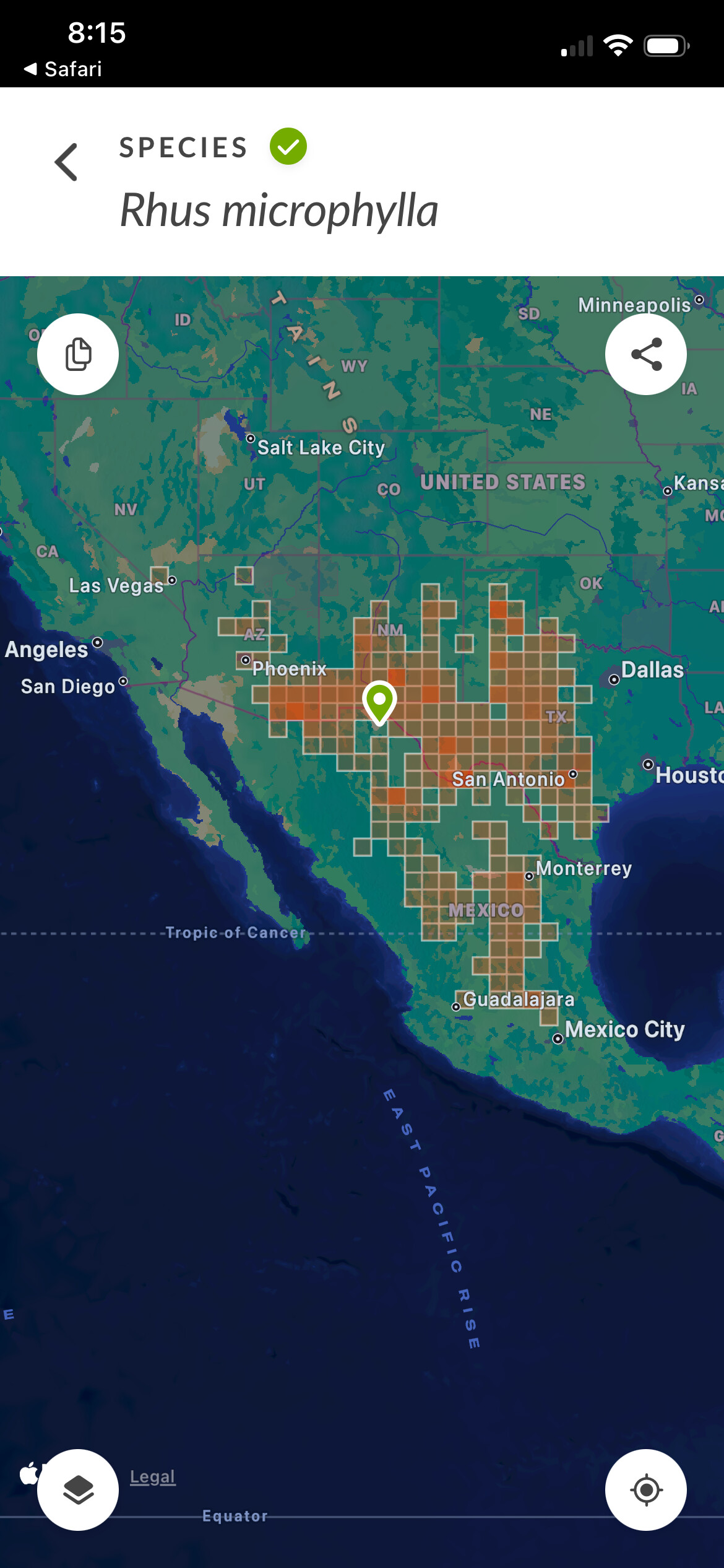 Description of problem: I would expect that the sharp lower point of an observation marker (on a map ) marks the actual location of an observation. It appears that that is not the case and that the actual location of the observation is at the center point of the marker. You can see this in the included screenshots. The observation is in El Paso, as you can see on the zoomed-in screenshot, but the zoomed-out screenshot makes one think that the observation is in Mexico because the sharp lower point of the marker is below the location of the observation.